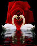 Алмазная вышивка «Два лебедя на фоне красной розы» 40x50 см