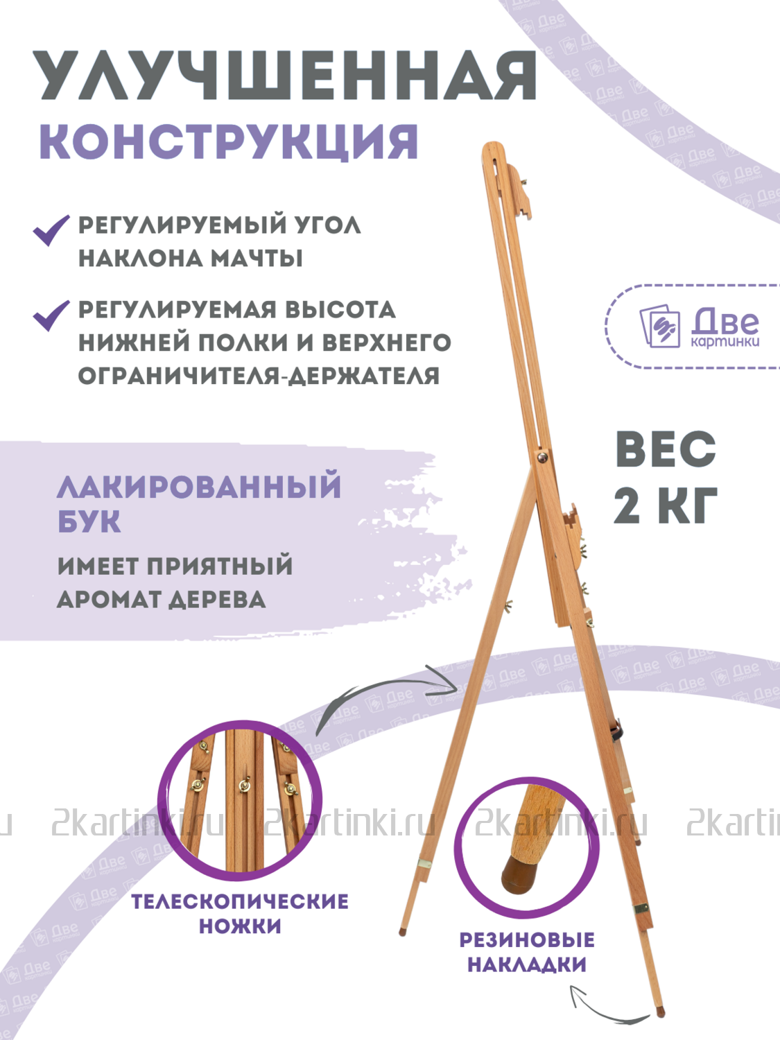 Это мой первый в жизни мольберт и я от него в полном восторге. Выбирала долго и тщательно. Очень понравилось, что этот мольберт складывается и в сложенном состоянии занимает не только мало места. Выполнен он из настоящего бука. Все легко собирается и отлично фиксируется. А также его можно использовать в интерьере в качестве подставки для готовой картины. Приобрела я мольберт некоторое время назад, но до сих пор по-детски радуюсь. Это просто восторг!ответить -