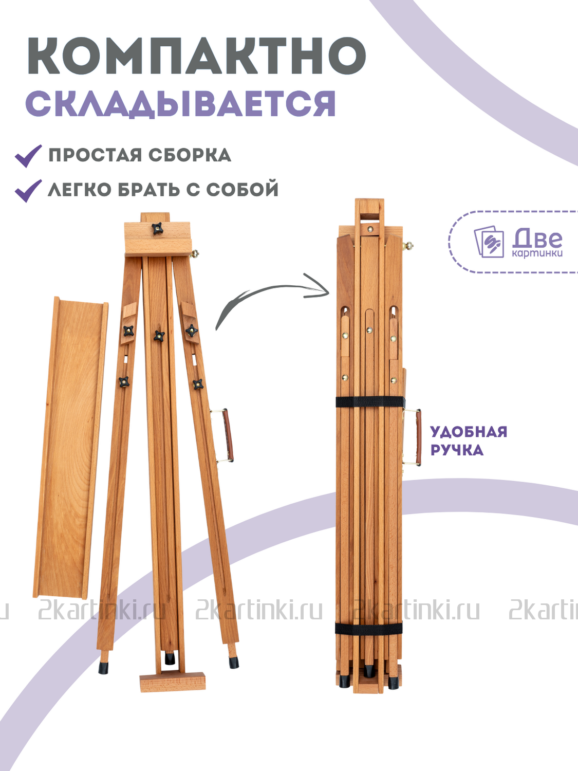 Очень хороший мольберт, сделан из бука, удобно и легко собирается, есть полочка. Смотрится очень красиво! Подойдёт для плэнеров на природе.